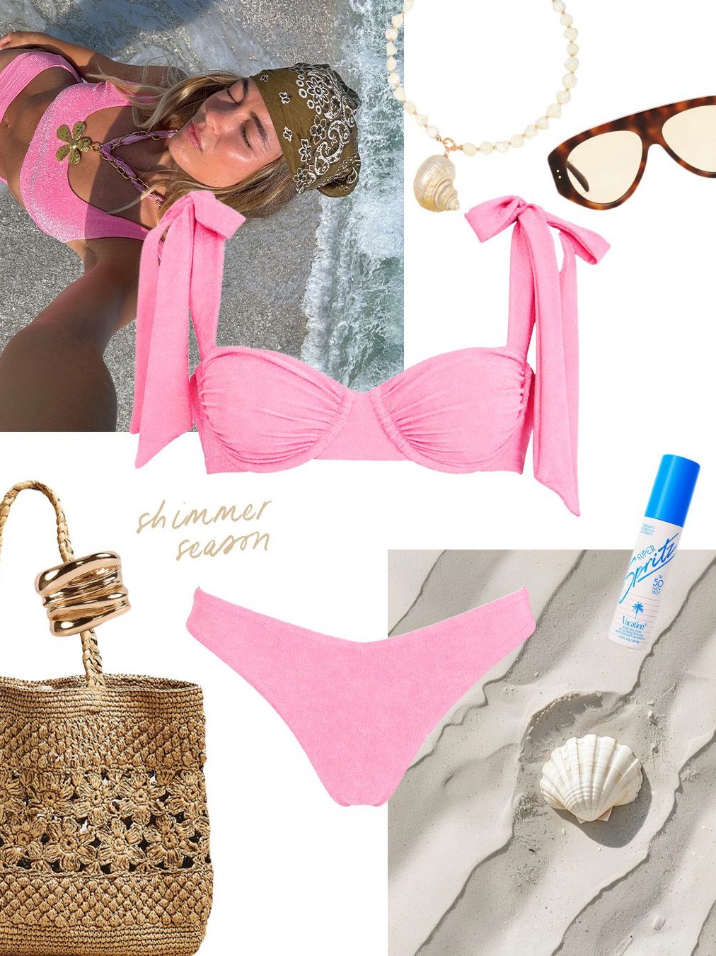 L*Space, the Southern California darling born in 1999, has long mastered the art of elevated swimwear that transitions seamlessly from sun-soaked shores to sultry evenings, blending flattering cuts, crochet-inspired textures, and sun-washed palettes into an effortless coastal femininity. Enter the Sunrise Shell Bikini Top ($130), a perennial bestseller for damn good reason—its 91% nylon, 9% spandex blend offers a buttery soft stretch with padded underwire cups for that perfect lift and support, while the back S-hook closure and adjustable shoulder straps ensure a customizable, confidence-boosting fit. The shell motif delivers on the season's texture obsession, evoking crochet's tactile allure in a pale, sunrise-kissed neutral that feels modern and wearable. Ideal for pool parties or layered under a sheer kaftan for after-dark drinks, this top embodies laid-back polish, proving swim can be the star of any wardrobe.