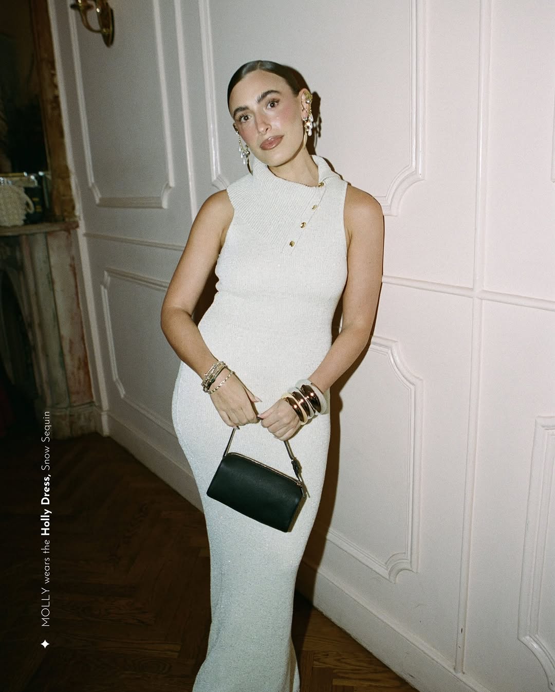 LPA, the LA-born provocateur of sultry minimalism since the mid-2010s, masterfully fuses evening drama with everyday edge in its fluid midi dresses—think corseted romance laced with subtle sheen and ruching for that confident, city-savvy polish. Enter the Emory Midi Dress in Ivory ($258), a sheer lightweight woven wonder with short puff sleeves that drapes like a whispered seduction, hugging curves before flaring into effortless movement. Its unlined allure and hidden back zip scream modern romance, ideal for transitioning from sun-drenched brunches to after-dark soirées. For kindred spirits, the satin-smooth Kate Midi ($244) adds ruffle-trimmed whimsy, while the stretchy Sarita ($94) offers budget-friendly drape, and Alice ($263) brings pleated neckline poetry. Spotted on @kristinellenhockman, this is LPA's blueprint for versatile vixenhood—light as air, bold as night.