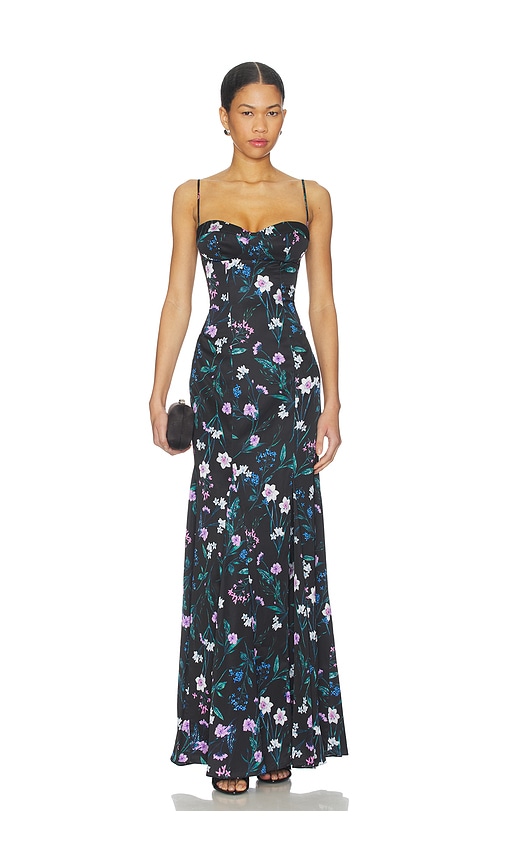 Katie May Collection embodies that effortless contemporary cool, an up-and-coming label that's quickly becoming a go-to for fashion insiders craving fresh, vibrant designs. Drawing from a palette of romantic florals, their latest offerings now available on Revolve are perfect for those balmy evenings or upscale garden soirees where you want to channel an ethereal vibe without sacrificing edge. Take the Opus Gown in Black Floral, priced at $398, a stunning floral print maxi crafted from lightweight woven fabric that drapes like a dream—its fitted bodice hugs your curves for a silhouette that's both flattering and fiercely feminine, ideal for weddings or cocktail hours. Complementing it is the Meryl Gown in Noir Botanica at $348, a floral print tank dress with a sweetheart neckline and sheer accents that add a touch of sultry transparency; the fitted bodice ensures a snug, supportive fit while the flowing skirt brings movement and grace. These pieces blend breathable materials with tailored fits, evoking a vibe that's modern romantic—think sunset strolls or intimate galas where you steal the spotlight with understated allure.