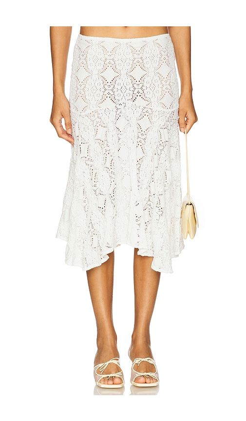 As an up-and-coming force in contemporary cool, With Jean is redefining effortless style with pieces that blend modern edge and timeless charm—think fresh, innovative designs that feel both accessible and aspirational. Dive into their latest drop, where the Hazel Top & Skirt in White set captures that breezy, just-in vibe, now available online and in stores. For a playful twist, the With Jean Camille Skirt in Beige ($138) steals the show with its fine gauge knit material, hugging the body in a fitted waist that flares into a scalloped hem—perfect for weekend brunches or casual gallery hops, exuding a flirty, youthful energy. Pair it with the ethereal With Jean Grace Skirt in White ($198), a midi marvel crafted from delicate floral lace panels interwoven with solid white fabric, offering a fitted silhouette that sways with romantic grace. This duo nails a bohemian-meets-urban fit, ideal for summer soirées or rooftop dates, where the lightweight materials ensure comfort without sacrificing that high-fashion allure. Whether you're layering for versatility or styling solo, these skirts embody With Jean's signature cool, making them must-haves for the fashion-forward set craving pieces that transition seamlessly from day to dusk.