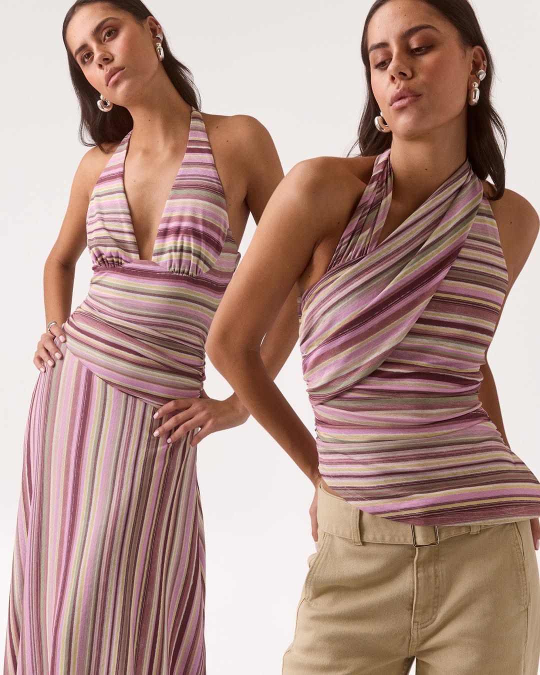 SOVERE Studio, the Australian powerhouse launched in 2014, masterfully fuses refined femininity with sun-washed hues and contemporary utility, crafting silhouettes that feel sensual, versatile, and deliciously undone—think halter necks draping softly over tactile knits and fluid separates. In the inaugural Elea edit, model Sarina embodies this vibe in lush Orchid, blending the Pandora Knit Dress ($228) with its pull-on halter styling and unlined knit for a body-skimming fit that's equal parts ease and allure. Ground it with the FALDA PANTALÓN SONALI ($198), a cotton-spandex culotte boasting a lined, structured drape for all-day movement, or layer the open-back Zinnia Dress ($198) in polyester for sultry drama. For lighter days, the VESTIDO MIDI BELLA ($56) in linen-rayon delivers fully lined midi perfection. Hand-washable and made in China, these pieces offer forgiving fits ideal for sunlit lunches to evening escapes—pure wardrobe alchemy.