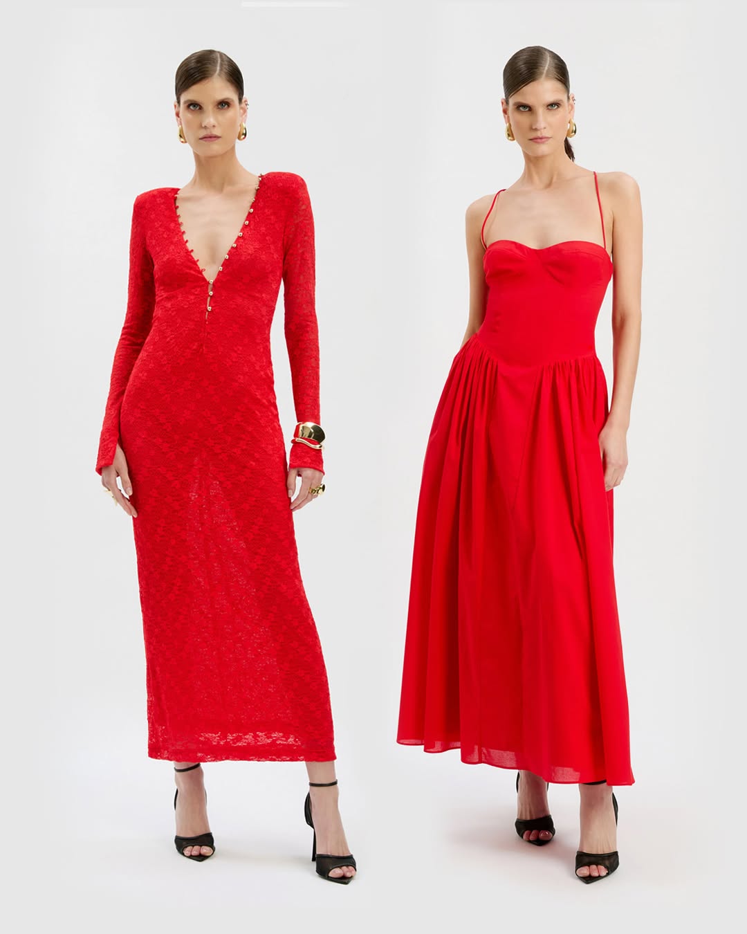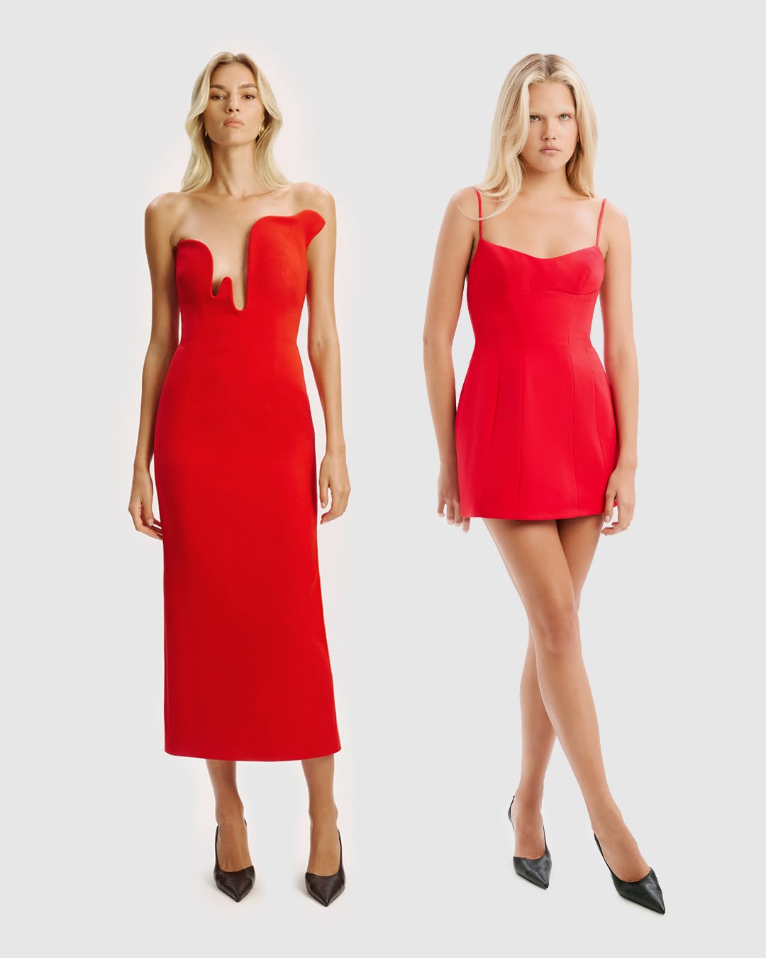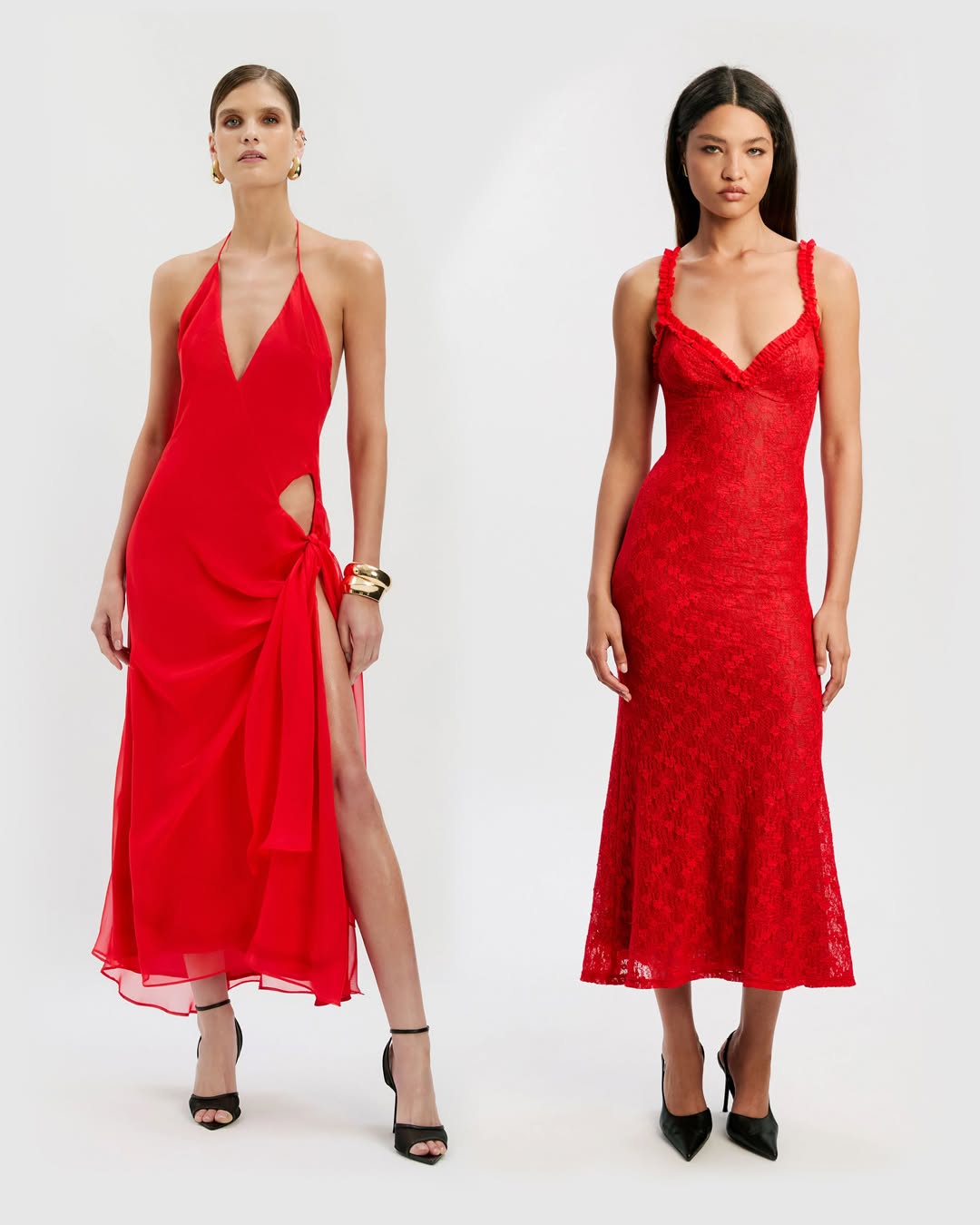 Bardot, the up-and-coming darling of contemporary cool, is all about that effortless edge meets sultry sophistication—think fresh takes on timeless silhouettes that scream modern muse. Dive into their latest obsession: fiery red maxi dresses designed to captivate and conquer. The Yve Halter Dress in Fire Red ($159) wraps you in luxurious satin, boasting a daring deep V-neckline and slender halter straps that hug your curves with a fitted bodice before cascading into a fluid, floor-skimming skirt—perfect for those steamy date nights where you want to turn heads and spark envy. For a more accessible allure, the Mave Halter Neck Maxi Dress in Deep Red ($70) opts for lightweight woven fabric, delivering a breezy yet body-skimming fit with its halter neckline and ruched details that enhance every movement. These pieces vibe with a bold, romantic energy, ideal for rooftop soirées or intimate evenings out, blending comfort with that irresistible 'come hither' charm. Whether you're channeling old-school glamour or contemporary flirtation, Bardot's reds are your ticket to unforgettable entrances.