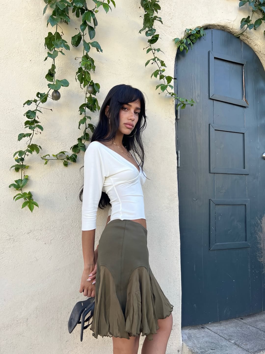 withjean, the up-and-coming force in contemporary cool, nails that elusive forever vibe with looks that transition from coffee runs to cocktail hours without missing a beat. Dive into the satin-drenched Tilly Top ($168), its scalloped lace neckline and cropped silhouette offering a flirty, body-skimming fit that's pure romance, perfectly layered over the lightweight, asymmetrical Fia Skirt ($162) in soft knit for an edge that drapes like a dream. Switch it up with the one-shoulder Fia Top ($156), all sultry asymmetry, slipping effortlessly onto the midweight Tilly Skirt ($172) for mid-calf sway and undeniable poise. These pull-on wonders blend luxurious satin sheen with knit's forgiving ease, delivering a vibe that's modern-minimalist yet endlessly versatile—think art gallery openings or rooftop soirées. Insider tip: hand wash to keep that fresh-off-the-runway glow. Obsessed.
