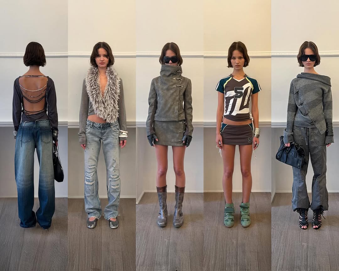 Jaded London, the irreverent London label born in 2013, fuses clubwear grit with street-style swagger through body-conscious silhouettes, sheer layers, and metallic embellishments that scream unapologetic provocation. In their M.V.P Styling Series—styled by @waleria7p and starring @amataalp—this look masterfully stacks the slinky $95 Extreme Fold Over Lace Up Knit Top, its 80% viscose jersey folding seductively at the neckline, beneath the $94 Triple Layered Top's cotton-elastane trio of tanks and long sleeves for dimensional depth. The $72 Eyelet Studded Tank adds silver-tone grommet punch atop it all, while the $111 Studded Colossus Wide Leg Jeans—90% cotton with dramatic volume and studded flair—anchor the fit in effortless contrast. Soft, washable fabrics meet experimental cuts for a youth-driven vibe that's sensual yet street-ready, perfect for launch drops, club conquests, or digital-age dominance.