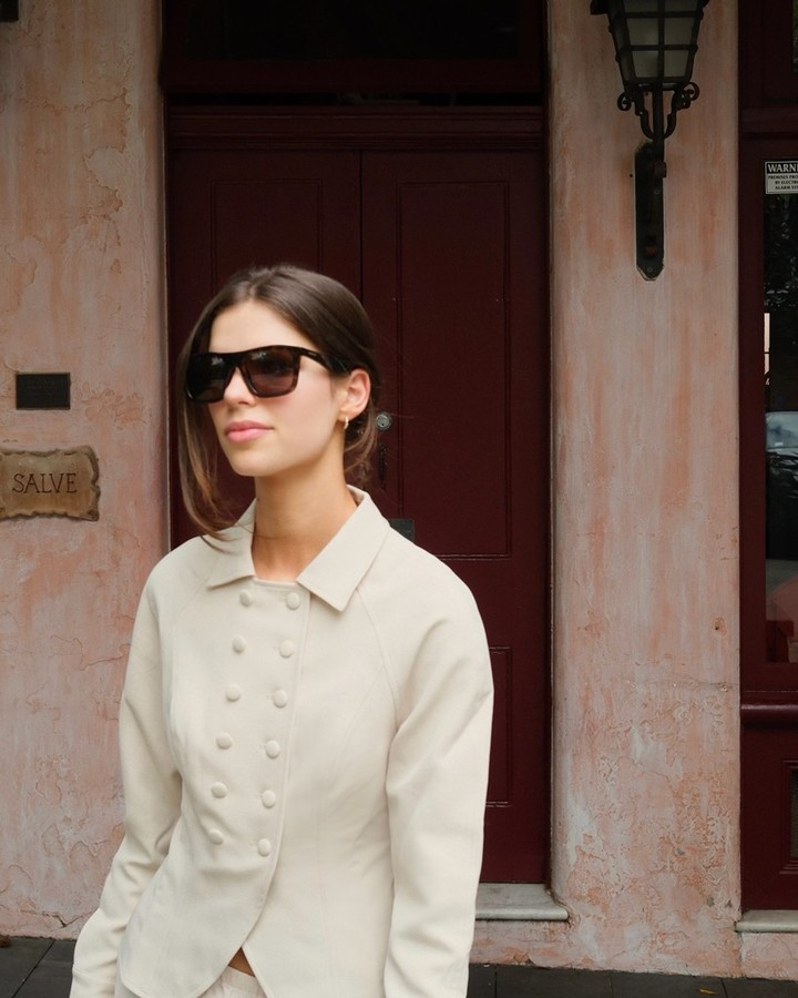 Lioness, the Sydney-born trailblazer since 2009, excels in statement silhouettes that effortlessly fuse elevated essentials with after-dark allure—think body-conscious drapes, sharp separates, and that bold, sensual modernity laced with cool-girl minimalism and Aussie ease. Capturing the 'in full focus' moment, the Lune Blazer ($89) steals the show in cream: a cropped powerhouse of 55% polyester, 36% viscose, and 9% elastane, delivering a curve-hugging fit with front button closure, side flap pockets, and hand-wash simplicity for seamless wear. Pair it with the breezy Tranquility Top ($39) in lightweight 100% cotton, featuring adjustable back straps, front buttons, and flap pockets for effortless sensuality, or the textured Femme Top ($32) in 55% linen and 45% viscose for a linen-kissed edge. Anchor with the Wimbledon Mini Dress ($125), its 96% polyester-4% elastane blend fully lined, padded, and pocketed for body-skimming polish. This tailored trio vibes sharp and seductive, ideal for power lunches morphing into nightlife—occasions screaming unapologetic poise.