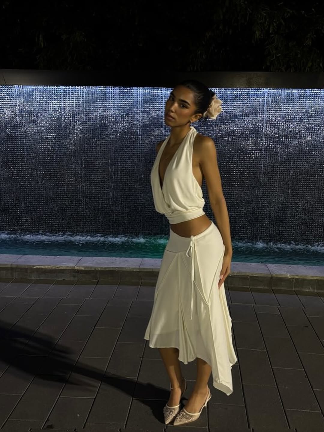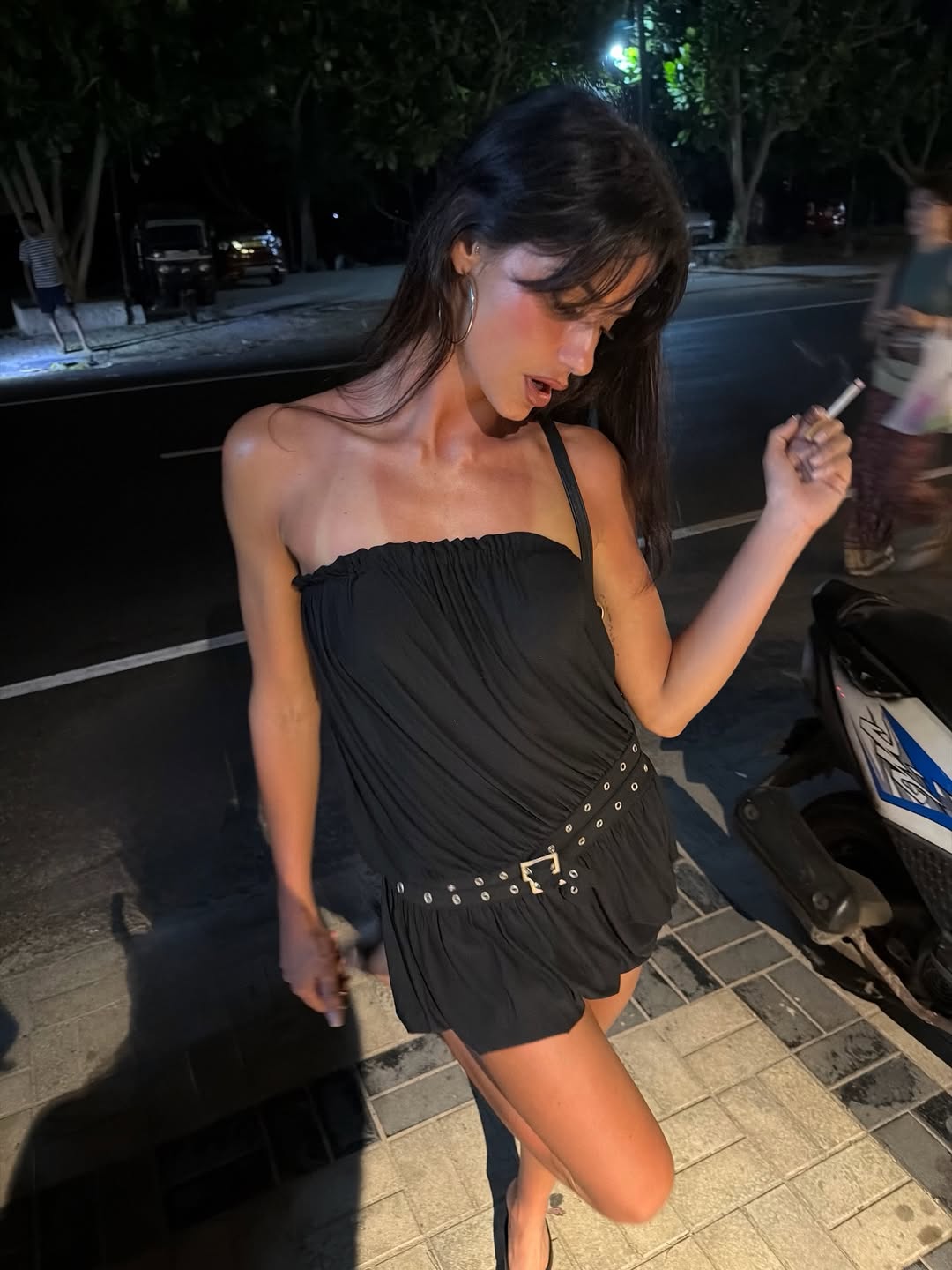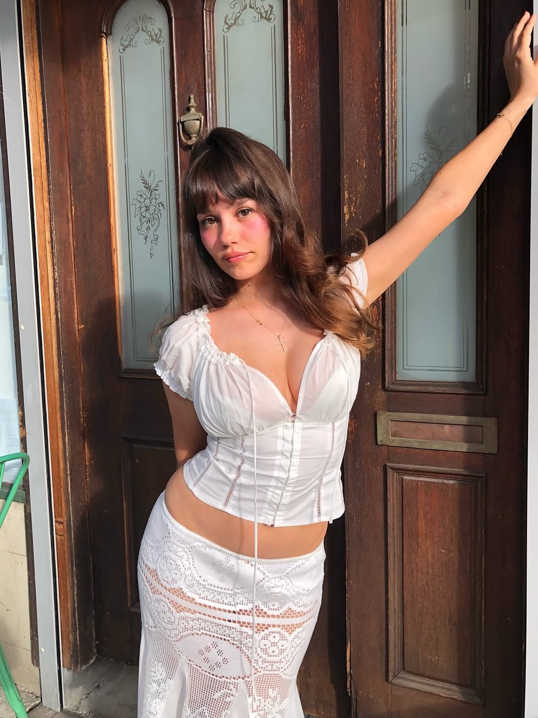 With Jéan, the Los Angeles-born label launched in 2019, has mastered romantic minimalism through body-conscious separates that fuse tactile softness with subtle provocation—think sheer knits, lingerie-adjacent details, and modern-femme nostalgia. Captured in the label’s signature 'SEEN IN WITH JÉAN 💌' moment, this look pulses with intentional sensuality: the $157 Minivestido Elouise, a midweight 100% cotton open-knit crochet pull-on that drapes unlined over curves for breathable allure; the $154 Francis Top in lightweight acrylic-poly jersey, its low front tie closure teasing just enough skin; the $152 Florence Mini Skirt, semi-sheer cotton-poly blend hugging hips with provocative brevity; and the $259 Sabrin Dress, fully lined polyester-rayon-spandex with a front button loop for tailored seduction. These pieces, from crochet’s tactile embrace to jersey’s fluid fit, are crafted for occasions demanding quiet confidence—intimate dinners, moonlit gallery hops—where every hem and neckline invites lingering glances.