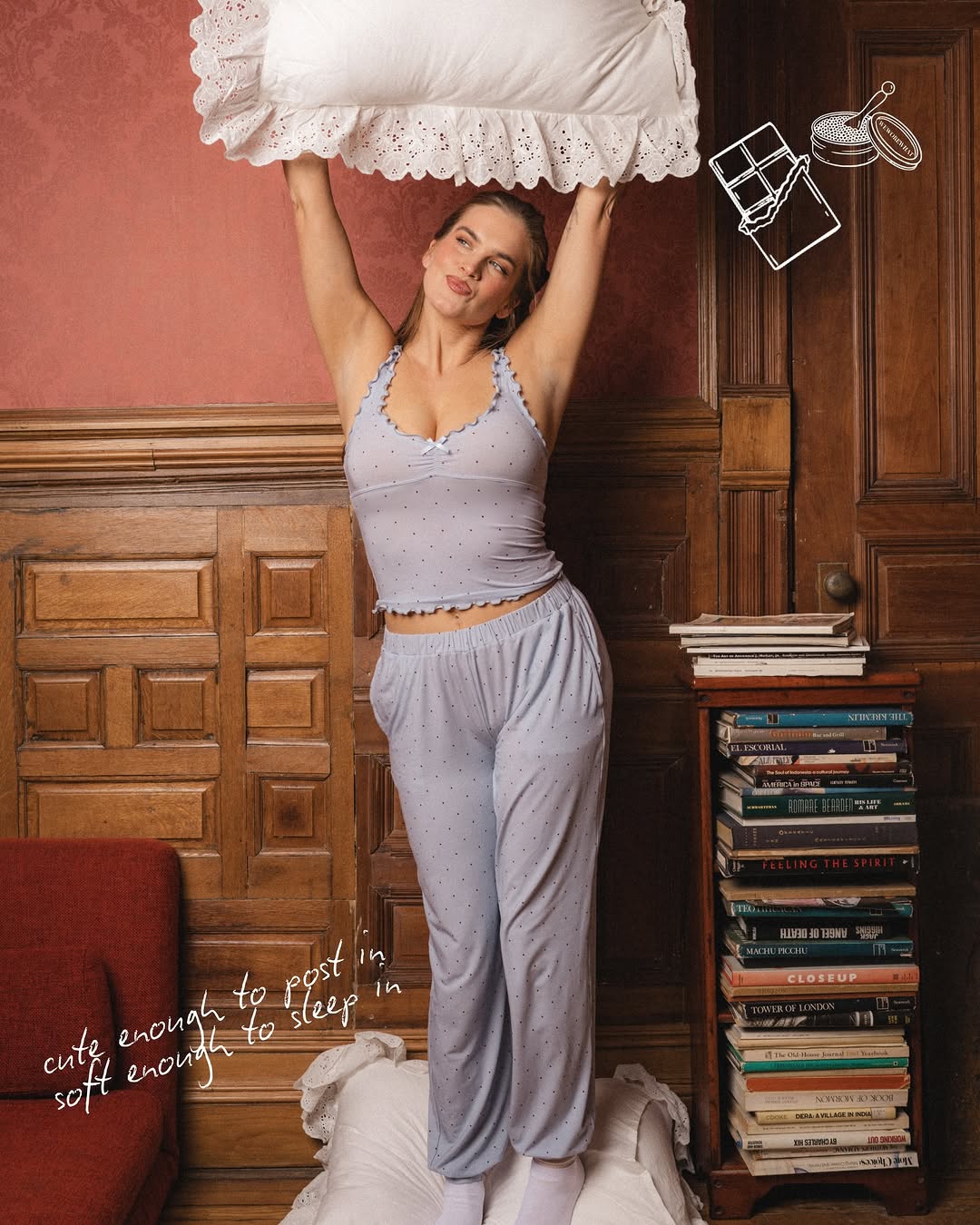 WeWoreWhat has long mastered that intoxicating NYC downtown alchemy—translating unapologetic sensuality into seasonless, body-aware staples that effortlessly blur the lines between lazy evenings and sultry nights out. Enter their latest drop, where comfort speaks the loudest love language: buttery-soft modal jersey you’ll never want to peel off. Picture curling up with takeout and a binge-watch in the TOP SIN MANGAS CON BORDE ONDULADO ($29, 91% modal, 9% spandex) for its wavy-edged allure and second-skin drape, or layer the CAMISETA SIN MANGAS CRUZADA ($24, same luxe modal blend) with adjustable crisscross straps that hug just right. For a flirty twist, the TOP HOLGADO CON MANGAS CON VOLANTES ($24, 65% polyester, 35% rayon) brings playful ruffles and relaxed volume, while the BLUSA CON VOLANTES Y BOTONES ($42, rayon-nylon-linen-spandex mix) offers soft-structured ruffles and button-front ease. These fits celebrate modern femininity with trend-driven ease—perfect for movie marathons that might just spill into after-dark adventures. Launching 02.03 at noon EST.