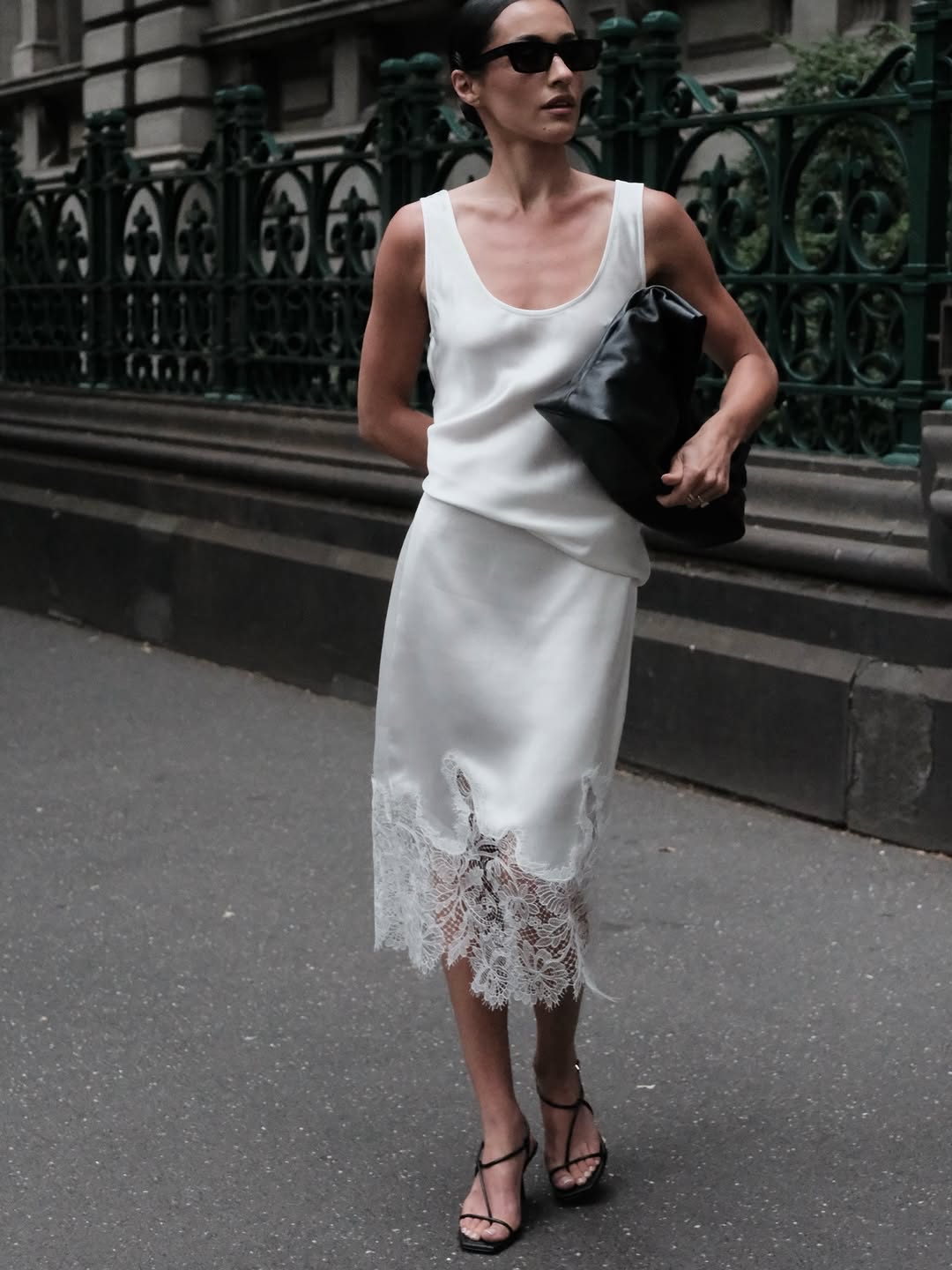 Shona Joy, the Sydney-founded powerhouse of elevated eventwear since 2000, masterfully blends modern femininity with effortless wearability through fluid satins, sculpted bodices, and relaxed tailoring that transitions seamlessly from dusk cocktails to dawn brunches. Captured in the ethereal styling of @arianatapsell, the latest drop whispers contemporary elegance with understated sensuality. Enter the La Lune Cumulus Silk Lace Maxi Dress ($273), a 100% silk stunner with intricate nylon lace cut-outs and a back tie closure for a softly structured, partially lined silhouette that drapes like a dream—perfect for garden soirées. Layered vibes continue with the La Lune Bias Cowl Midi Dress in Cream ($117), its ivory satin spaghetti straps and fluid bias cut offering directional ease. For bolder dropped-waist drama, the Moraya Maxi Dress ($395) in polyester-acetate blend delivers soft structure, while the fully lined Huxley Maxi Dress ($306) in acetate-poly promises refined sensuality. Delicate details meet wearable luxury, ideal for occasions demanding poise and play.