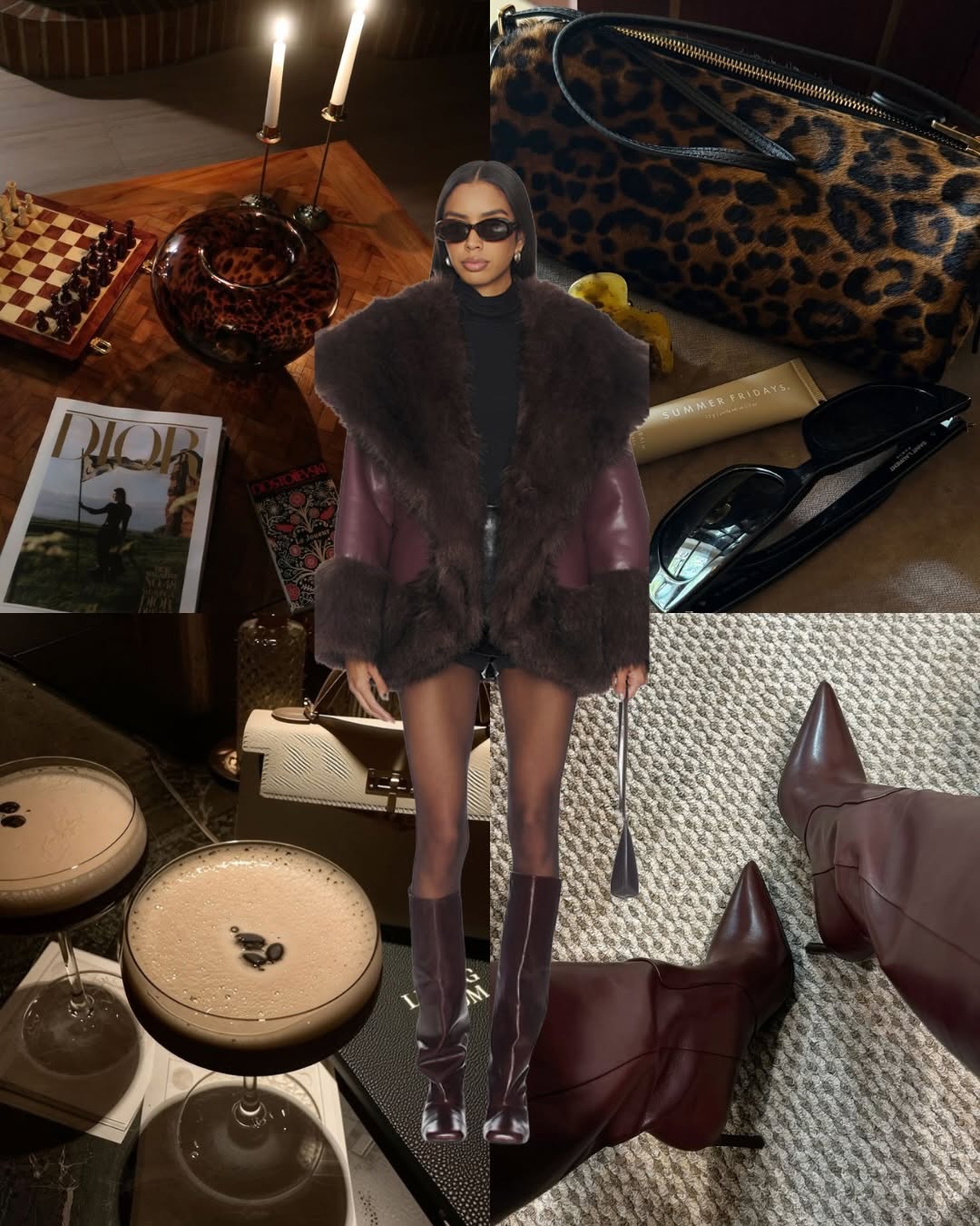 WeWoreWhat, the downtown New York darling born in 2016, has always mastered that intoxicating blend of modern femininity and unapologetic sensuality, crafting seasonless essentials that effortlessly blur the lines between lazy daywear and sultry nightlife. Picture this: a slow Sunday scroll through @revolve, wrapped in the brand’s x Premium Double Breasted Suede Coat ($495), a buttery 100% pig leather masterpiece with padded shoulders, front flap pockets, and a tailored button-front closure that hugs your curves with confident, body-aware precision—professional leather clean only, for that investment-worthy sheen. Layered beneath is the x REVOLVE Cocoon Faux Fur Jacket ($298), its plush faux fur wide collar and cuffs melting into sleek faux leather sleeves for a concealed drama that’s equal parts soft structure and trend-driven ease. This duo screams plush opulence meets playful utility, perfect for lounging in low-rise tailoring vibes or transitioning to evening allure, all in a rich chocolate-brown palette that’s pure escapist fantasy.