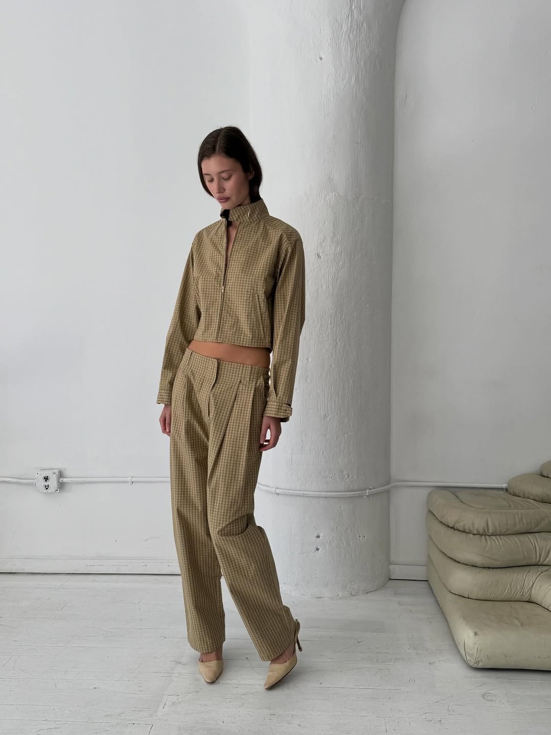 Orseund Iris continues to set the gold standard for seasonless luxury, delivering timeless knitwear, tops, and chic staples that empower the modern woman to build an elevated, enduring wardrobe. Capturing this ethos is their ultra-limited Workwear Set in plaid, meticulously crafted in New York. The low-rise, intentionally oversized Workwear Jacket ($525) and matching Pant ($525)—both in crisp cotton poplin—boast a tailored silhouette with generous proportions, blending sharp authority with effortless ease. Ideal for high-stakes meetings or seamless transitions to after-work drinks, this set exudes confident workwear vibes. Amp up the sporty-feminine edge with the reversible Off-Season Knitted Raglan Shirt ($295), inspired by vintage American heritage sportswear, or dial into cozy versatility via the cotton drawstring Lazy Lover Pant 2.0 ($295). It's polished power dressing, reimagined for the urban trailblazer.