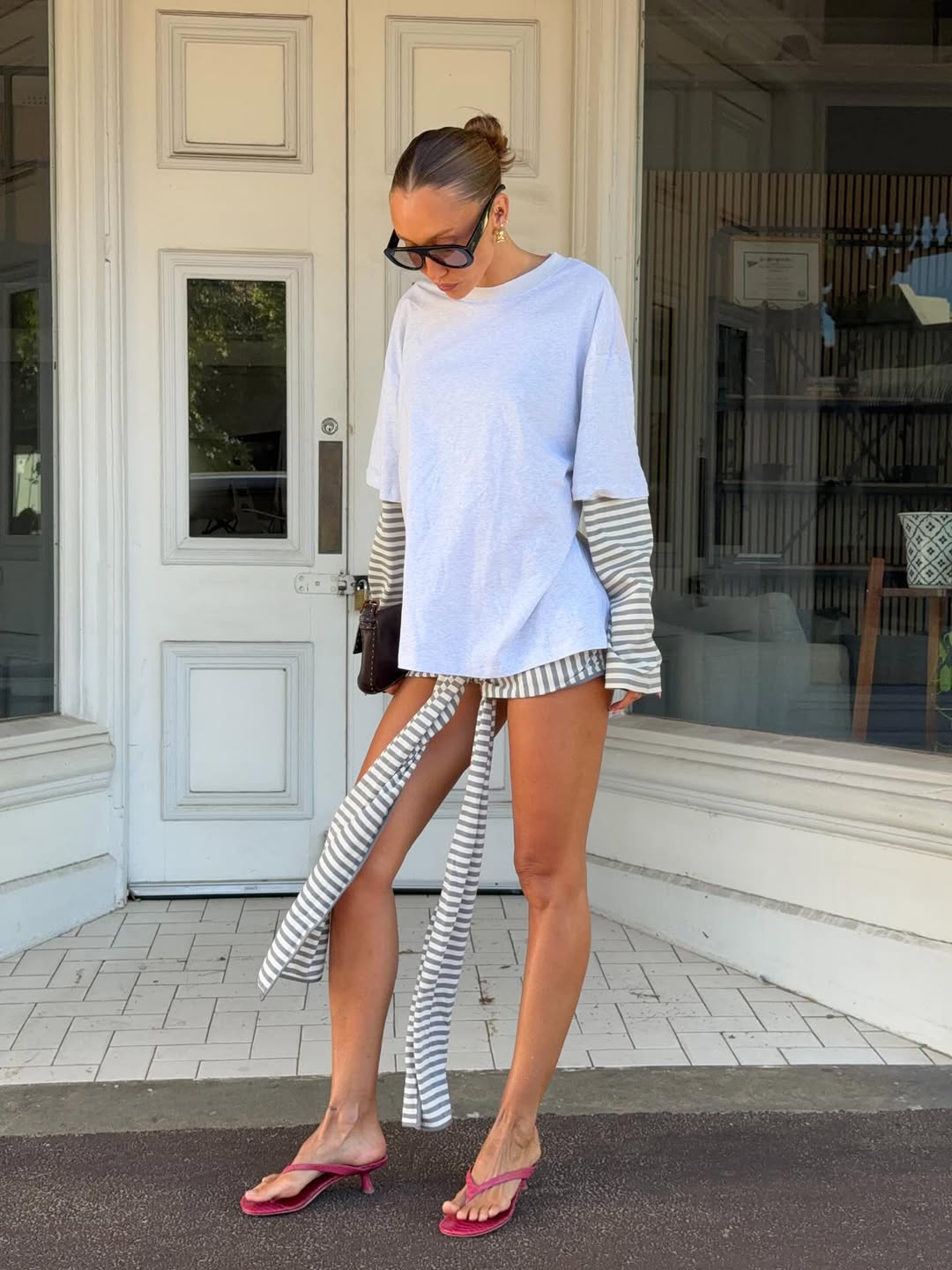 Lioness, the Sydney-born provocateur of statement silhouettes since 2009, masterfully blurs elevated essentials with after-dark glamour, channeling bold, sensual confidence through body-conscious cuts and cool-girl minimalism laced with Australian ease. Enter their bestselling Bottega Shirt in Ash Stripe ($75), a 100% cotton jersey essential with pull-on ease, buttoned cuffs, and poplin sleeve accents for sharp, modern edge—perfectly unisex for his-and-hers styling. Paired with the Bloom Skort in matching Ash Stripe, it delivers a flirty, draped fit that's loose yet figure-skimming, blending 48% polyester, 42% cotton, and 10% viscose for effortless movement. This dynamic duo screams night-out versatility: think rooftop soirées or intimate dinners demanding unapologetic allure. Hand-wash simple, partially lined for comfort, it's the ultimate power couple look—snag $25 off with code DOUBLEBLOOM and bloom boldly together.