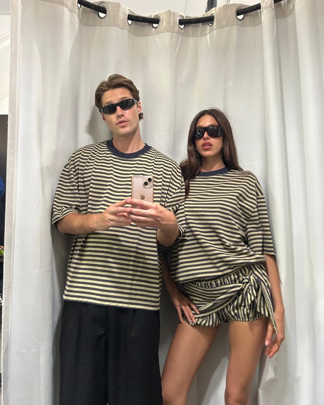 His & Hers Lioness Glow: Stripe-Matched Duo Dressing