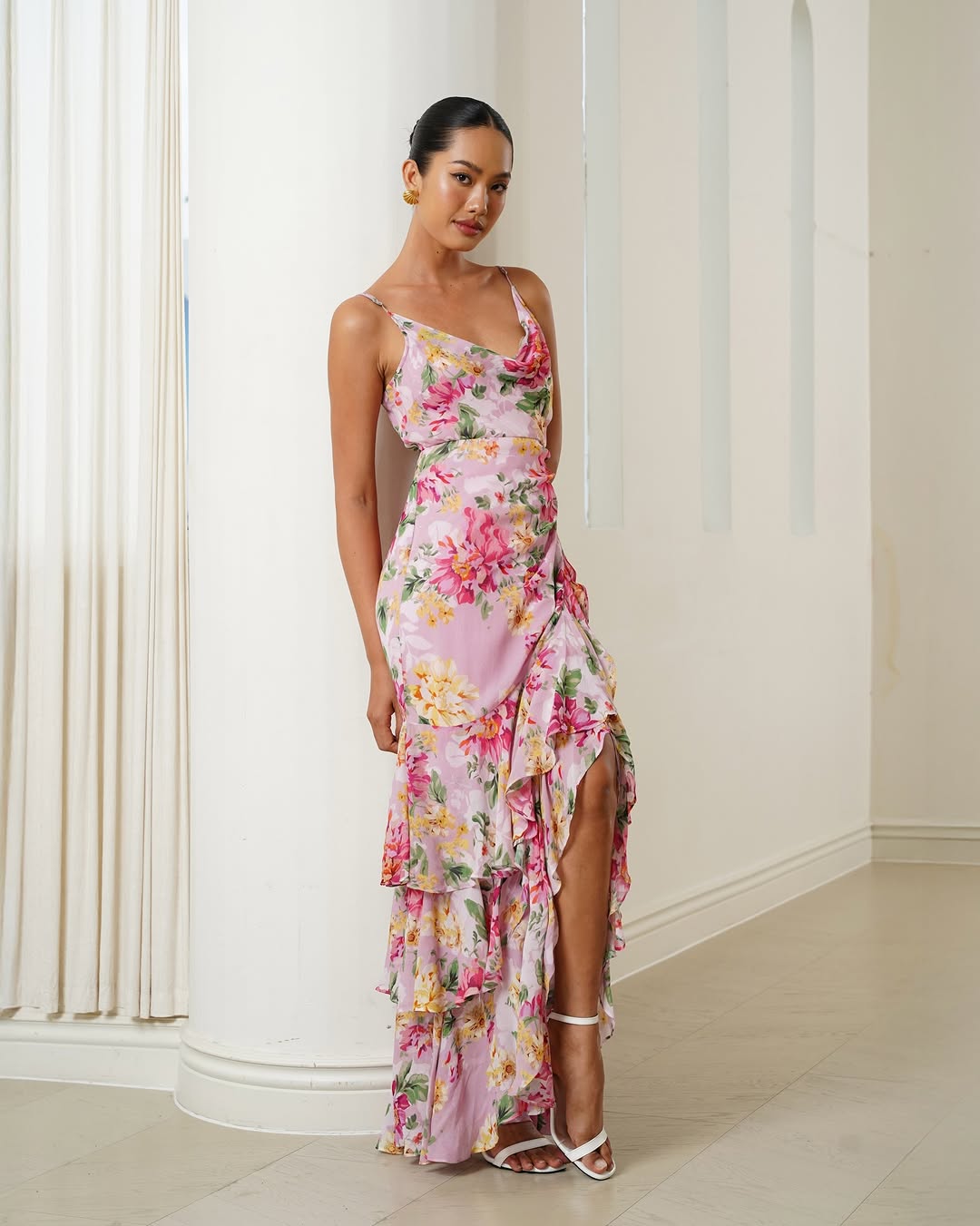 Yumi Kim masters the art of vibrant, feminine allure with its signature silk silhouettes and lush floral prints, crafting effortless elegance for the romantic globetrotter who craves sweeping maxis and playful romance. Channel the whimsy of the Romy Dress—its hand-sewn 3D roses and pleated one-shoulder fit delivering wardrobe sorcery—in these standout viscose wonders. The Cabo Dress ($186), a 55% viscose-45% rayon beauty with concealed side zipper and partial lining, skims the body in soft, hand-washable fluidity ideal for sunset soirées. Elevate with the Carmine Maxi Dress ($258), fully lined 100% viscose perfection from Vietnam, its hidden side zip ensuring dry-clean glamour for evening escapes. For breezy versatility, slip into the Baxter Maxi ($162) or Mahogany Maxi ($174), both 55% rayon-45% viscose with self-tie shoulders or back ties, fully lined for hand-wash ease and hidden zip security. These pieces blend sculptural fits, breathable materials, and bohemian vibe for garden parties, beachside dinners, or city wanderings—pure floral magic you deserve.