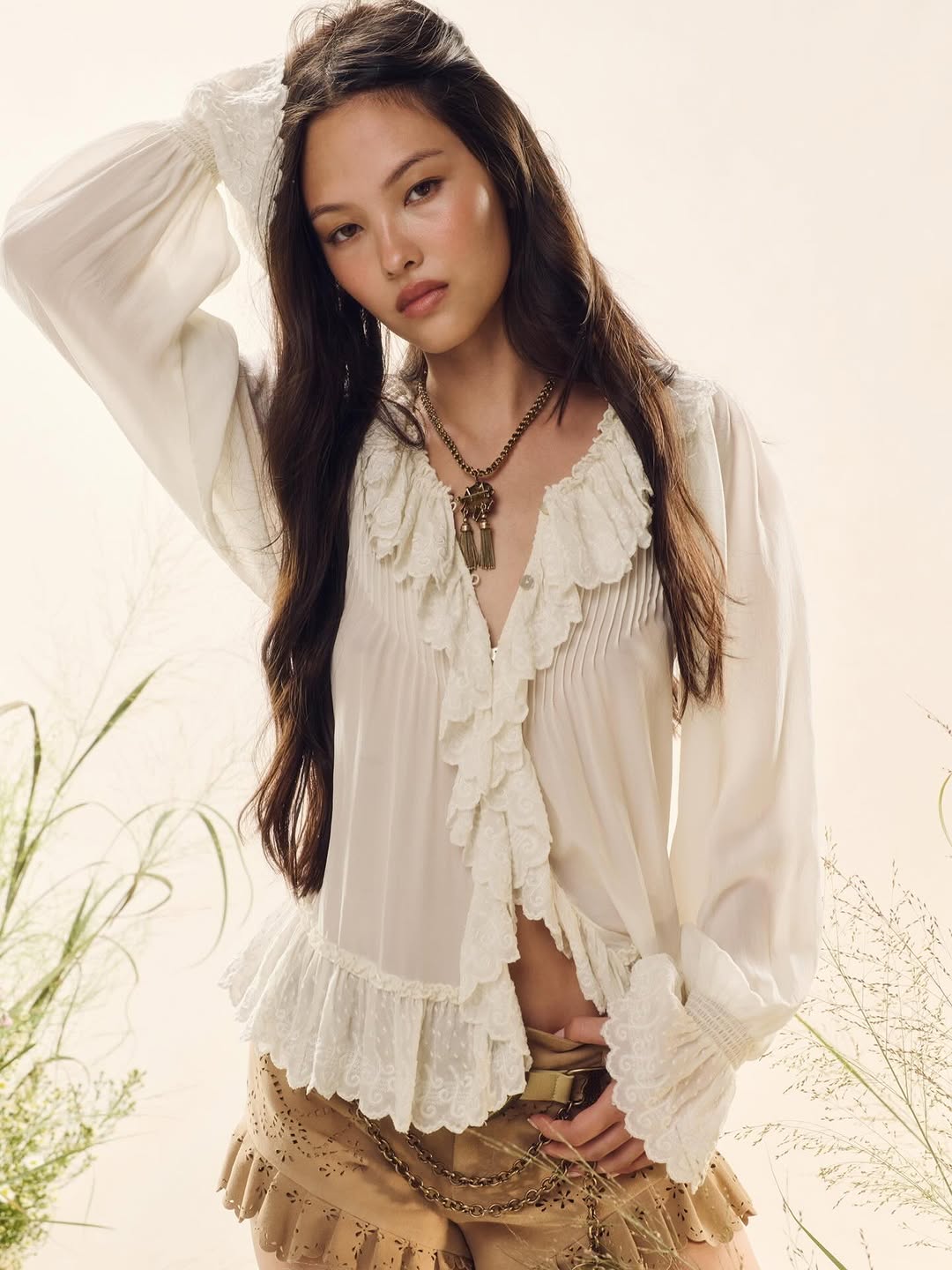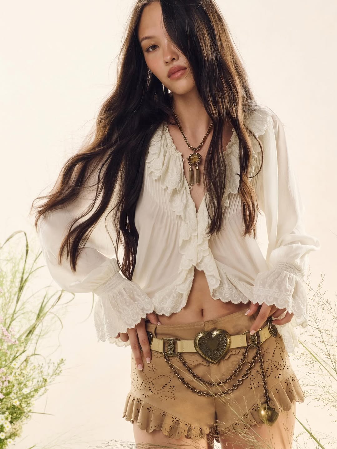 LoveShackFancy, Rebecca Hessel Cohen's New York-born reverie of vintage-inspired femininity, is melting winter's chill with its New Spring '26 wardrobe defrost—a cascade of ultra-romantic layers blending nostalgia and modern whimsy. At the heart, the sheer woven Thessia Top in Ivory ($297) crops flirtatiously with lace-trimmed V-neck and front tie, layering seductively over the lightweight lace Aralina Blouse ($158) or the 100% silk Afton Blouse ($214), its front tie and detachable details adding playful allure. Crown it with the open-front Melisse Cardigan ($445), its ruffled eyelet knit draping in celebratory escapism. Silks and sheers in soft ivories offer breathable fits for transitional ease, evoking pastel romance and dreamlike glamour. Ideal for sunlit brunches or evening garden soirees, this vibe shifts seamlessly from everyday fancy to holiday sparkle, defrosting your style with effortless, bow-laden enchantment.