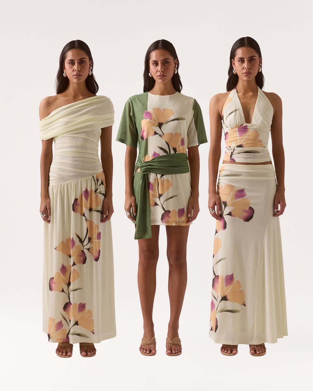 As an up-and-coming force in contemporary cool, sovere_studio is redefining modern elegance with their latest Elea Edit 1, drawing from unrelenting vibrance and refined femininity to crank up the seasonal heat. Picture this: the Dahlia Skirt ($128), a sheer mesh maxi marvel adorned with delicate floral prints and a ruched waistband that hugs your curves just right, offering a fit that's both forgiving and flirtatiously form-fitting. Layer it under the Zinnia Dress ($198), a lightweight, flowing maxi with a halter neckline that drapes effortlessly, creating an ethereal silhouette perfect for those balmy summer soirees or sunset beach walks. The materials—gauzy mesh and airy fabrics—breathe life into every movement, evoking a vibe of bold, blooming confidence that's unapologetically feminine yet street-smart cool. Ideal for transitional occasions from daytime brunches to evening escapades, this duo captures that insider edge: versatile, vibrant, and utterly wearable for the fashion-forward woman on the rise.