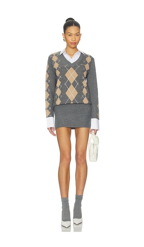 Sweater dress is constructed of a fine gauge knit. The dress features a mini length, straight cut, and ribbed hem. Self: 90% wool, 10% cashmere Lining: 97% cotton, 3% spandex.Made in China.Hand wash cold.Partially lined.Pull-on styling.Lightweight knit fabric.Sequin accents throughout