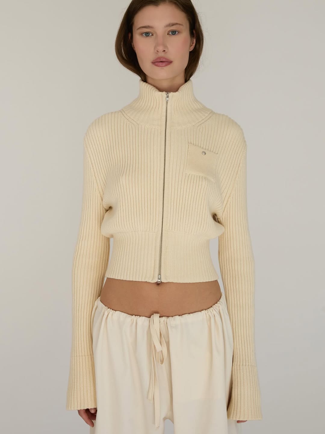 A refined essential with everyday ease. This zip-up is crafted from a soft cotton-cashmere blend for lightweight warmth and comfort. Designed with a two-way zipper for versatile styling, this knit features an exaggerated length cuff and square pocket detail on the left chest. Prefer an easier, roomier fit? We suggest sizing up for a more relaxed look.