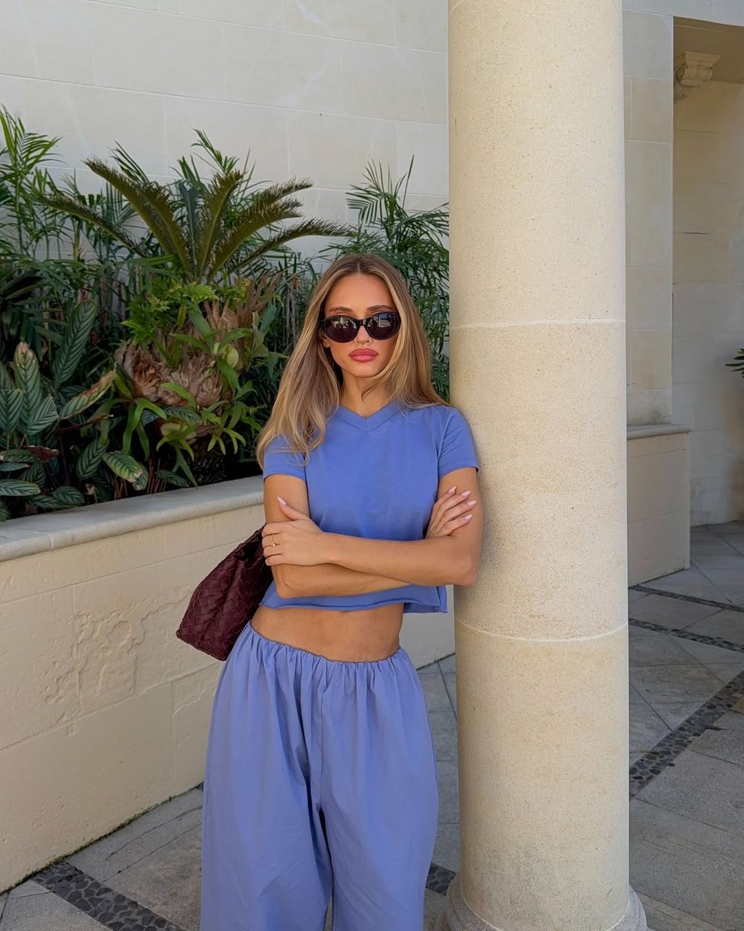 Sleeveless top constructed from a soft, lightweight knit fabric. Features a cropped length with a gathered hem and padded shoulders for a structured silhouette. 75% viscose 17% polyester 8% elastane.Made in China.Hand wash