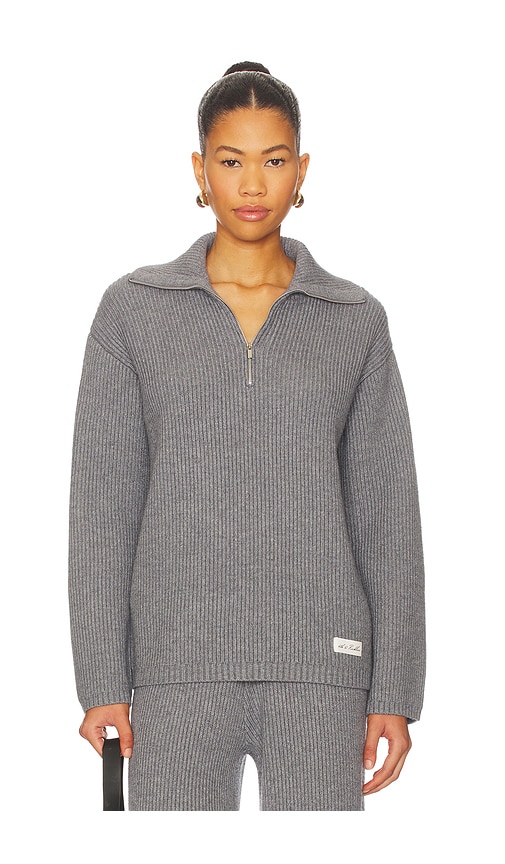 Ribbed knit sweatshirt with a relaxed fit and dropped shoulders. Features a point collar and a partial zip closure at the front. 51% viscose 29% polyester 20% polyamide.Made in China.Machine wash cold.Pull-on styling.Quarter zip closure.Midweight knit fabric