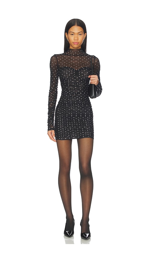 Sleeveless mini dress constructed from a base fabric fully embellished with small, round silver sequins. The dress features a strapless, straight neckline and a fitted silhouette. 100% viscose.Dry clean only.Fully lined.Hidden back zipper closure.Sequin embellished fabric.Neckline to hem measures approx 23.5" in length
