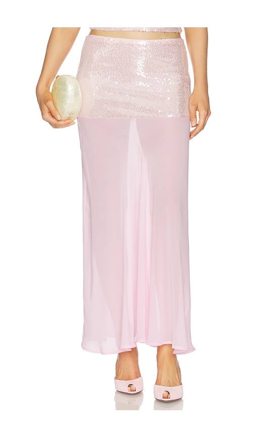 This maxi skirt is made of a smooth, knit fabric. It features a fitted silhouette with a straight hem.