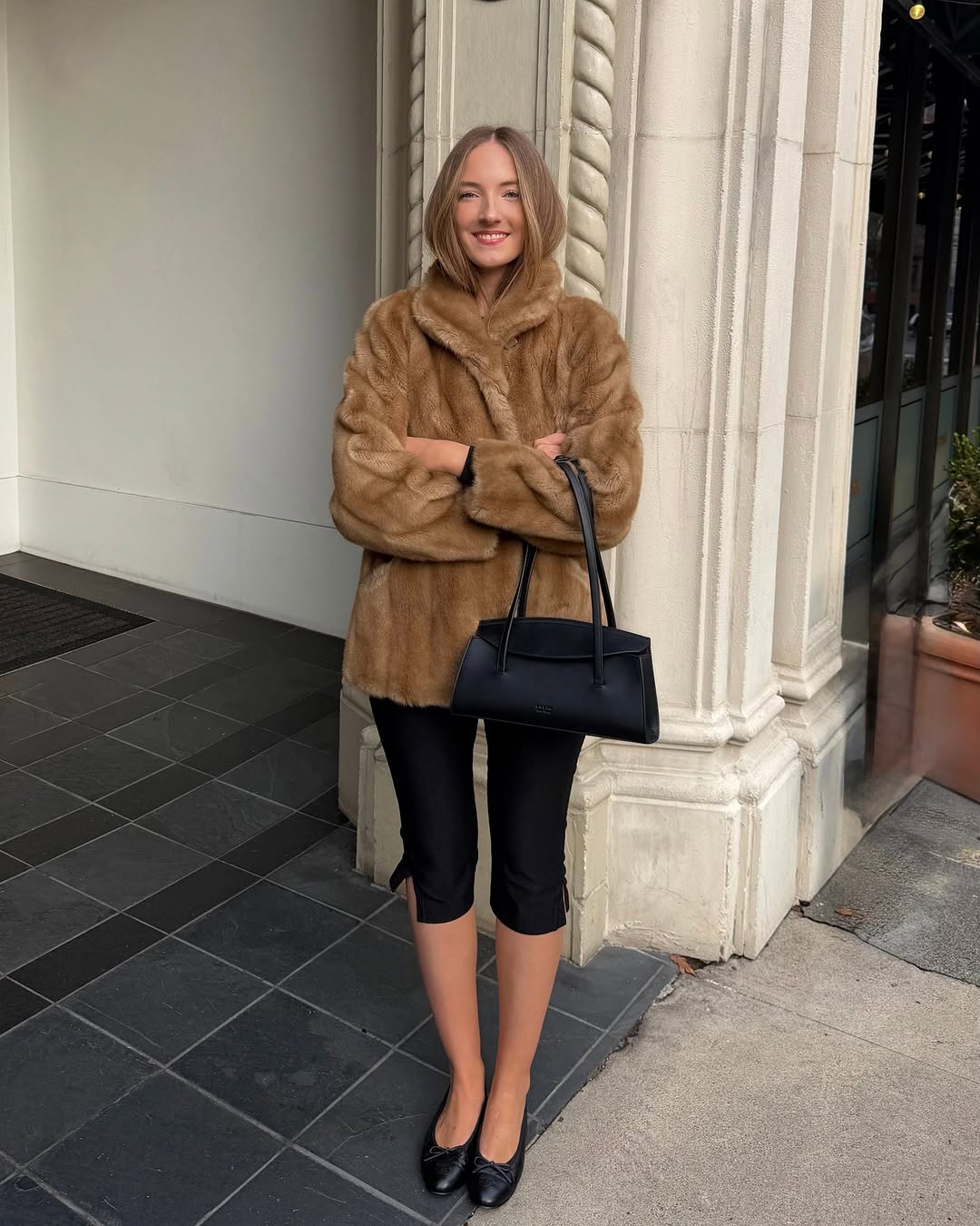 These black capri pants offer a sleek, modern silhouette. Crafted from a midweight stretch ponte fabric, they provide comfortable movement and a smooth, matte finish. The cropped length and subtle side hem slits add a contemporary touch, making them ideal for dressing up or down.