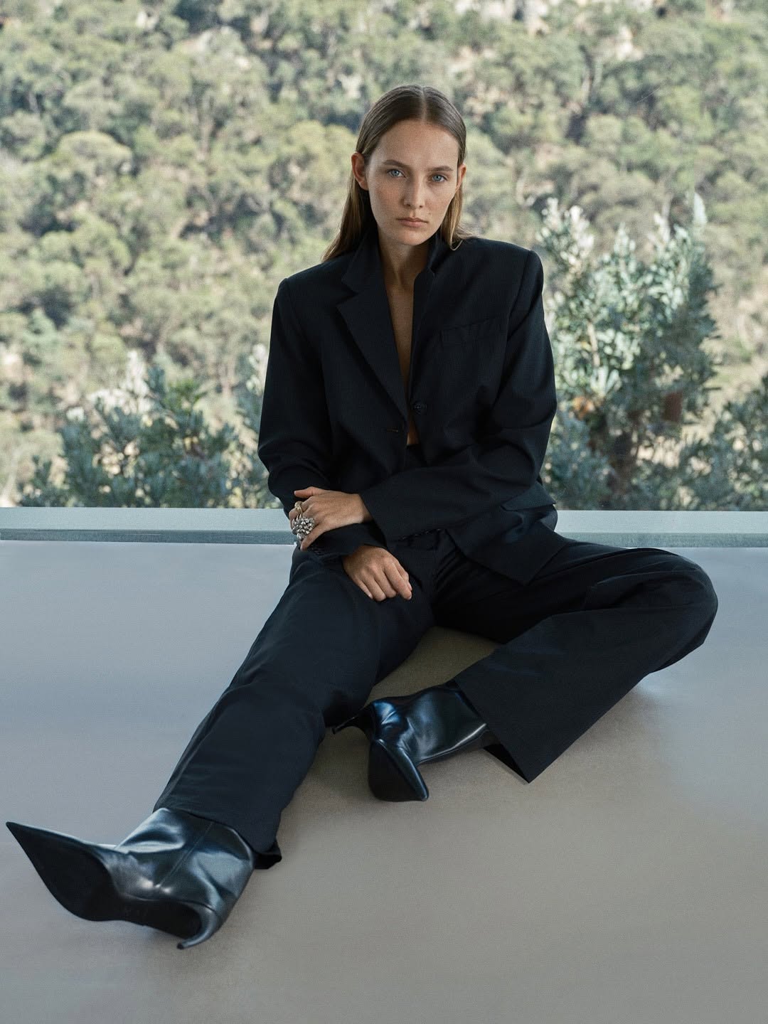 Self: 80% rayon, 20% linenLining: 100% cotton Made in China Dry clean only Zip fly with button closure Integrated waist belt Side slant pockets Linen fabricItem not sold as a set 20" at the knee breaks to 25" at the leg opening Revolve Style No. BECA-WP29 Manufacturer Style No. A25-40543