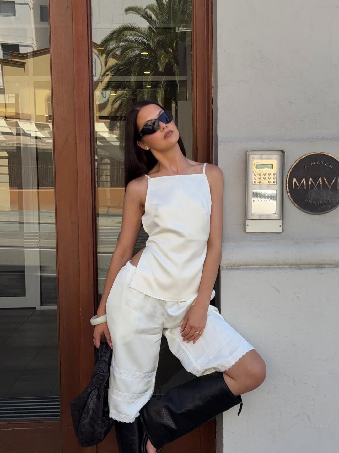 55% linen, 45% viscose Made in China Hand wash Pull-on styling with shoulder zipper closure Adjustable back strap Linen fabric with open back design Item not sold as set Revolve Style No. LIOR-WS89 Manufacturer Style No. LT854-1-2404