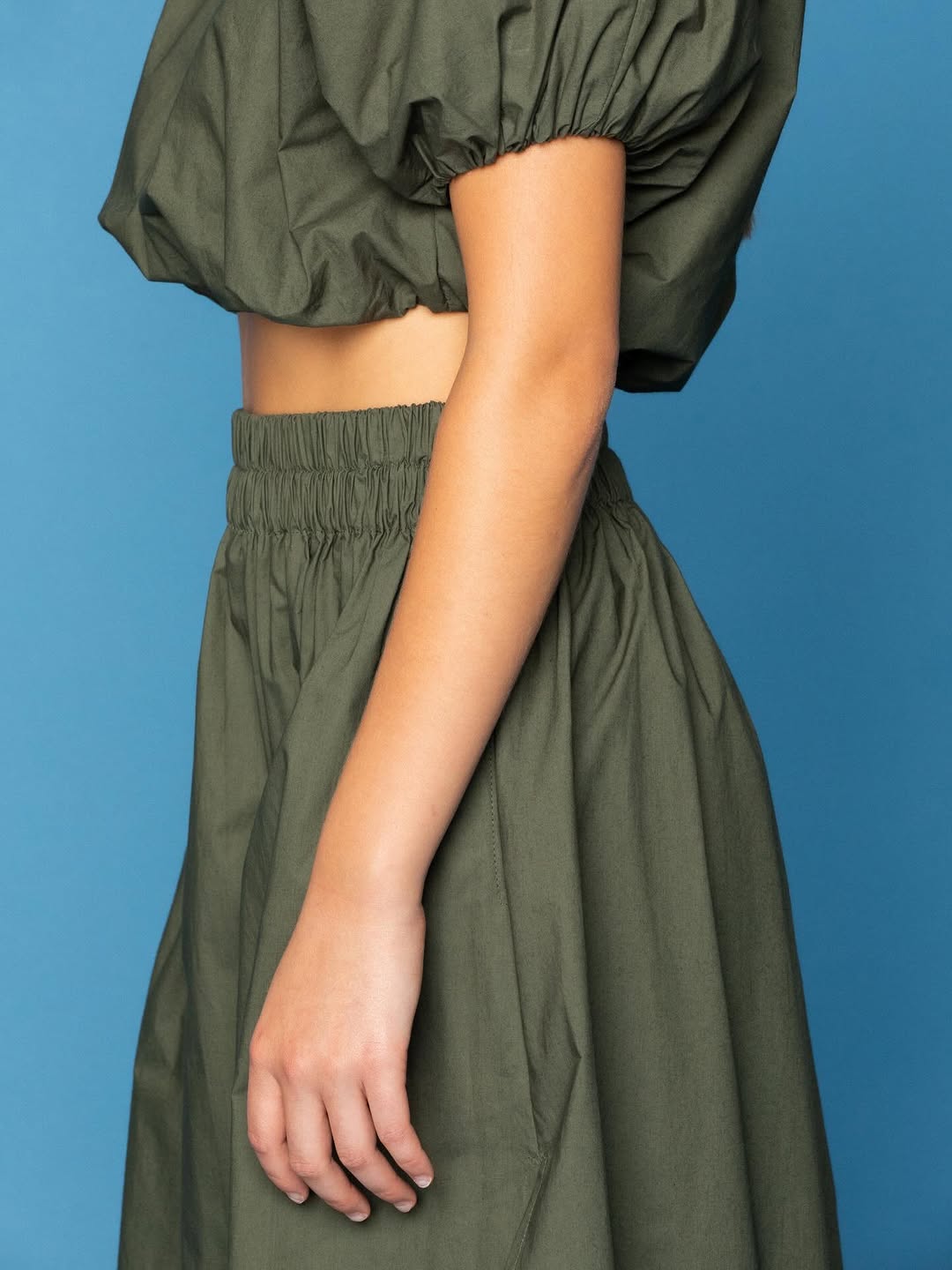 Description Details Model Care Say hello to the Opihi Top. This high neckline crop top with bubble sleeves is as unique as it is sophisticated. Wear yours with the matching Delia skirt, high waisted trousers or vintage denim. This unique top has been a staple in our collection since her debut in 2022. Featured with Delia Skirt Shop More Opihi Tops Here SHOP SIMILAR STYLES Opihi Cosetta Bubble Sleeve Crop Top 100% Cotton Made in Indonesia We offer returns for store credit only Model in Night wears size 1 Model is 5’9” / 175cm Bra size 32B, bust 31” / 78cm, waist 24” / 61cm, hips 34.5” / 88cm Model in Bone wears Size 1 Model is 5'8.5" / 174cm Bra size 32B, bust 32'' / 81cm, waist 26'' / 66cm, hips 36'' / 91cm See Size Guide Machine Wash Cold On Delicate Cycle With Mild Detergent Lay Flat To Dry Dry Clean Optional