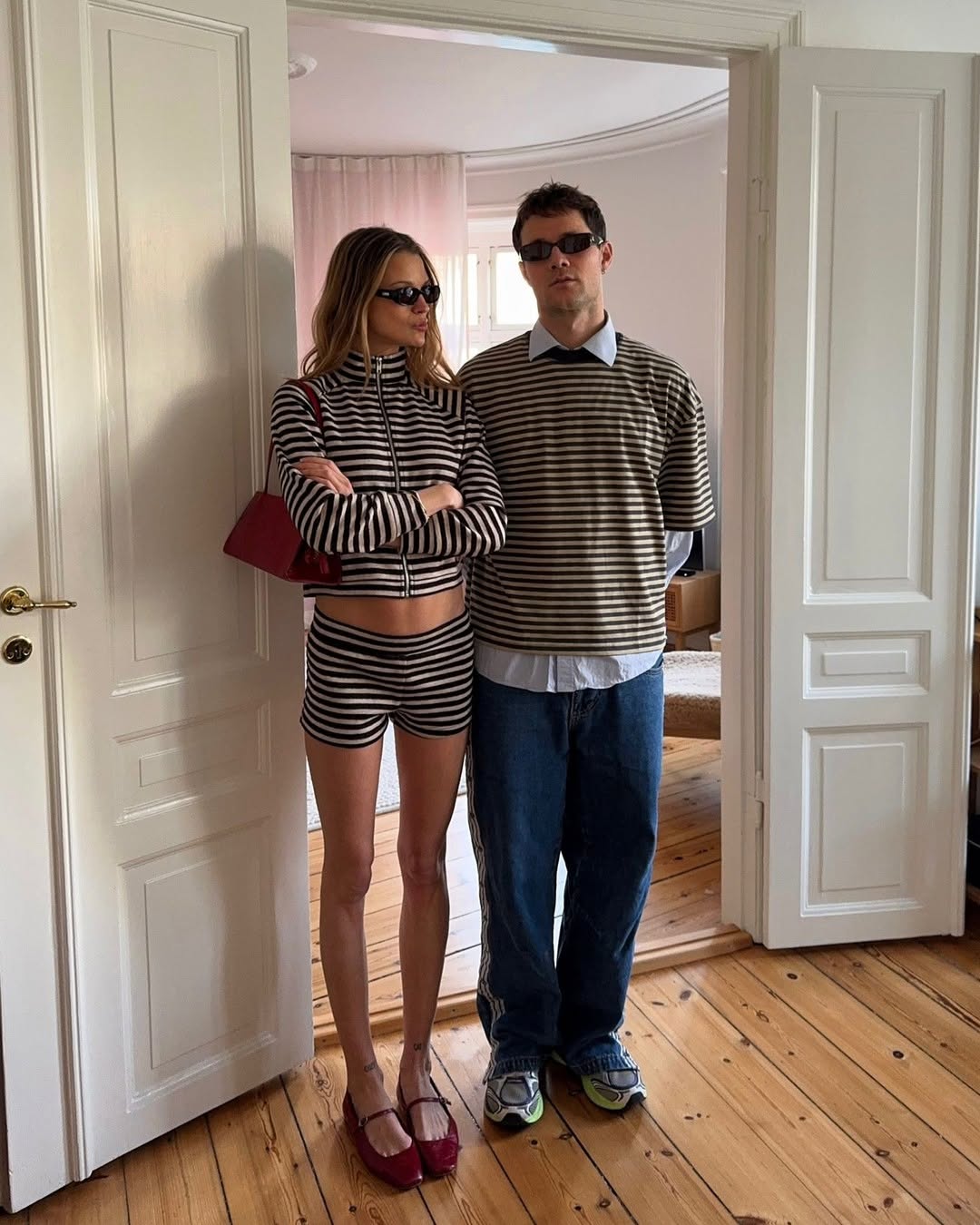 casual striped knit matching his and hers sets, relaxed streetwear