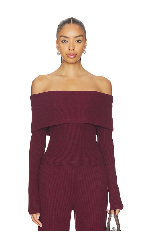 Off-the-shoulder top constructed from a soft, stretch knit fabric. Features a wide, banded hem and a straight neckline with draped short sleeves. 63% modal 37% polyester.Hand wash.Pull-on styling.Midweight jersey fabric