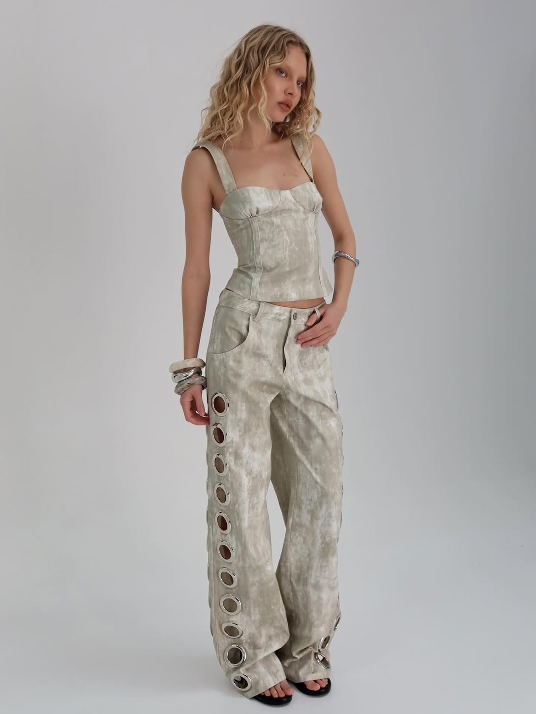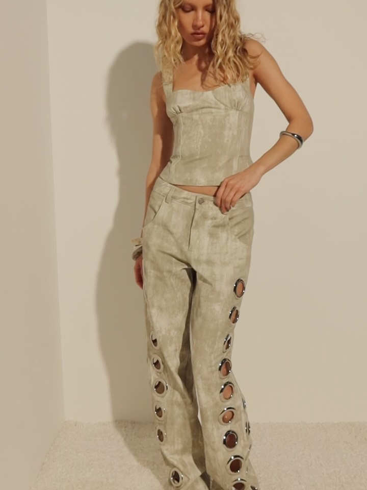This cream-colored corset top has a smooth, matte finish and a structured silhouette. It features a sweetheart neckline, boning for shape, and a smocked back panel for a comfortable, adjustable fit. The cropped length makes it ideal for pairing with high-waisted bottoms for a chic evening look. * Boned bodice * Smocked back panel * Back zip closure * Cropped design