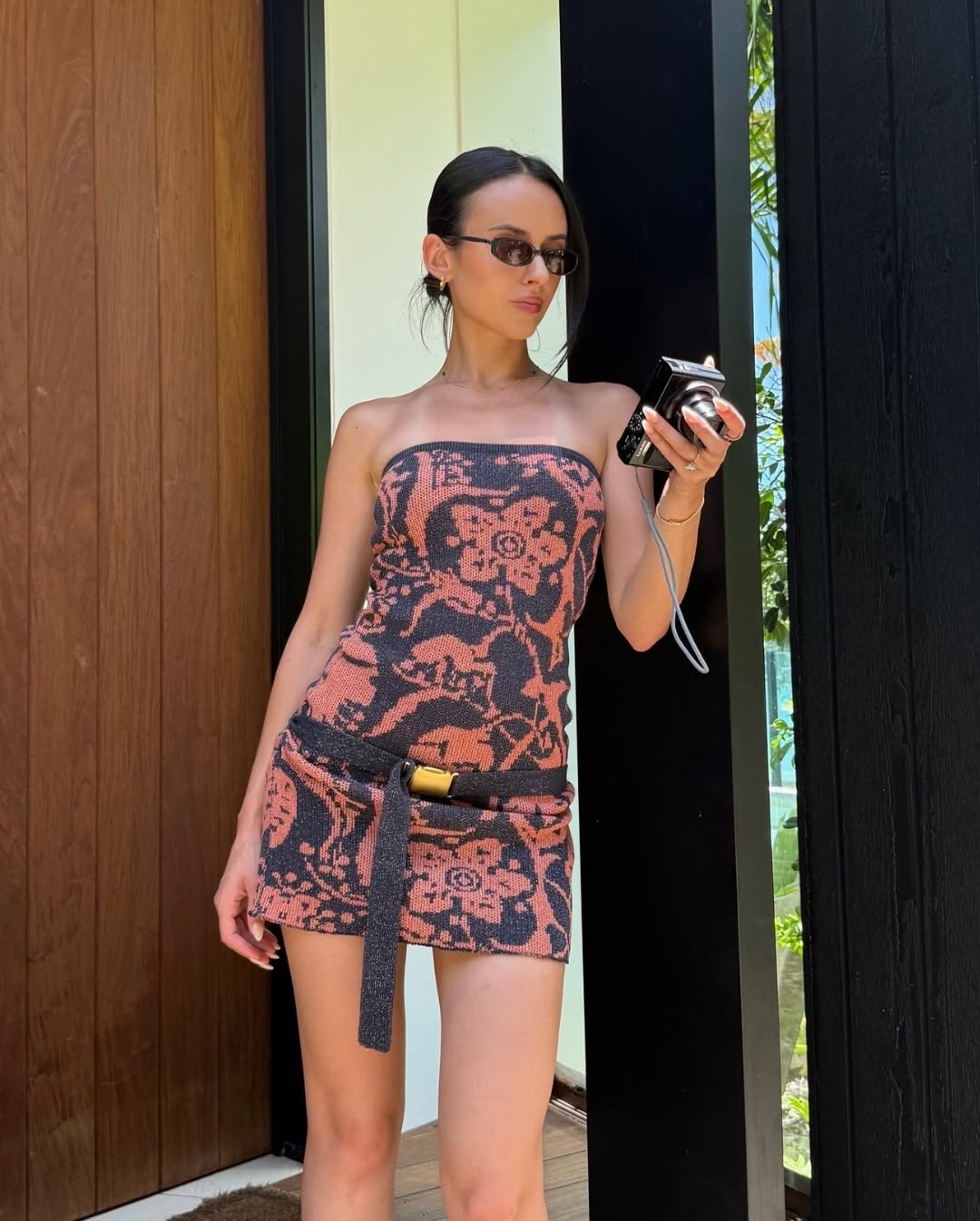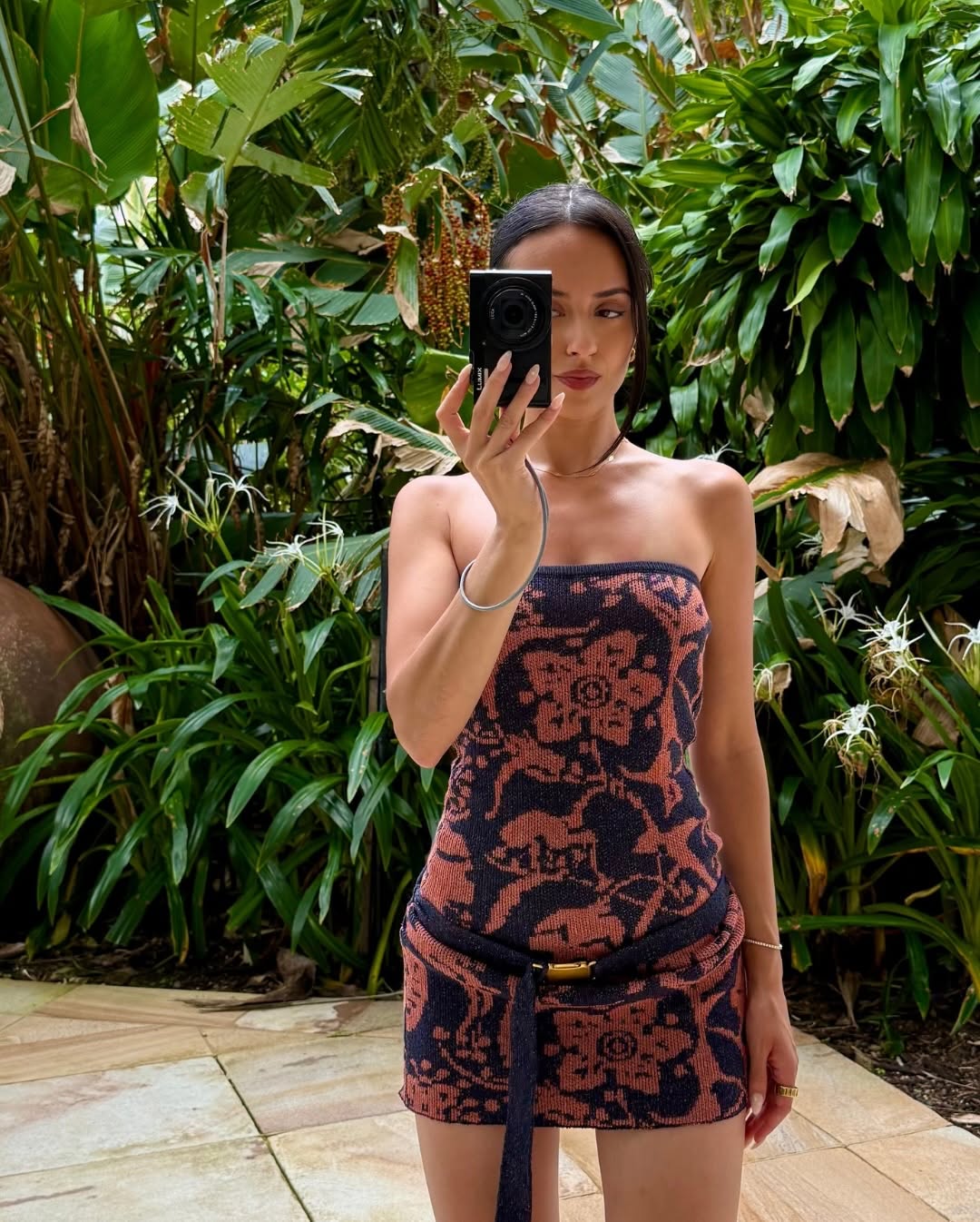 Asta Resort has mastered the art of affordable contemporary ease, crafting feminine dresses like minis, midis, and maxis that deliver clean, trend-forward silhouettes without breaking the bank—think polished everyday staples under $200. Enter the Gisele Mini Dress in striking Burnt Orange/Black ($190), a viscose-lurex blend (88% viscose, 7% polyester, 5% lurex) that drapes with subtle shimmer and pull-on simplicity, its unlined form skimming the body in a flirty, body-conscious fit. The detachable belt with gold-tone hardware cinches the waist for that insider-approved hourglass vibe, perfect for Melbourne's casual street style or sunset soirées. Chiara (@mschiaraa) nails the moment, proving this limited-edition gem elevates off-duty looks with its lightweight, hand-wash ease and metallic flecked allure—grab it online or in boutiques before it's gone. Effortless, feminine, and fiercely on-trend.