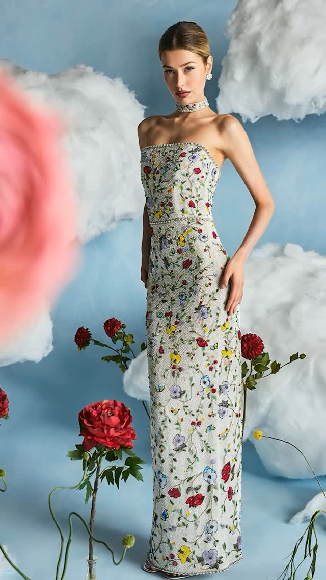 Self: 98% poly, 2% elastaneLining: 94% poly, 6% elastane Made in China Dry clean only Exposed back zipper closure Boned bodice with non-slip silicone grip lining at neckline Back panel design Crepe fabric Neckline to hem measures approx 52" in length16" at the knee narrows to 12" at the leg opening Revolve Style No. ALI-WC19 Manufacturer Style No. CC202A22806