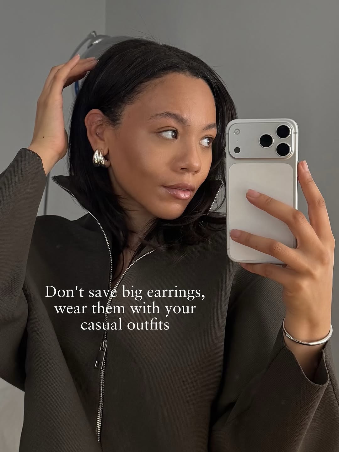 Canada's reigning Queen of the Hoop, Jenny Bird, masters sculptural, high-polish pieces with clean lines and modern weight, delivering that sophisticated edge for boardroom power plays or evening allure. We're non-stop obsessed with this silver-tone earring lineup that's pure inspo we can't quit. The PENDIENTES NON-STOP ($148) command attention at 3 cm wide by 4 cm high in gleaming metal, while the Doune Chunky Hoop ($138) offers 0.75-inch brass heft for everyday drama. Go big with Tome Large Hoops ($158), dangling 1 inch for sculptural swing, or opt for the refined 0.6-inch Leona Hoops ($158) in polished silver-tone. With secure post-back closures, these imported stunners elevate tailored suits or cocktail frocks, blending bold fit, luminous material, and versatile vibe into irresistible armor.