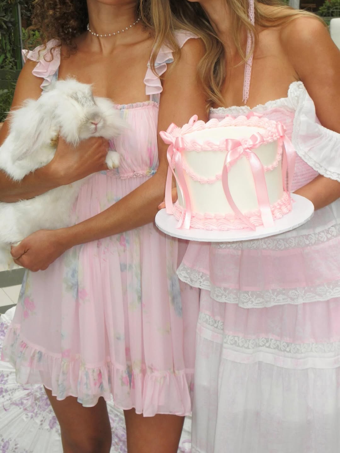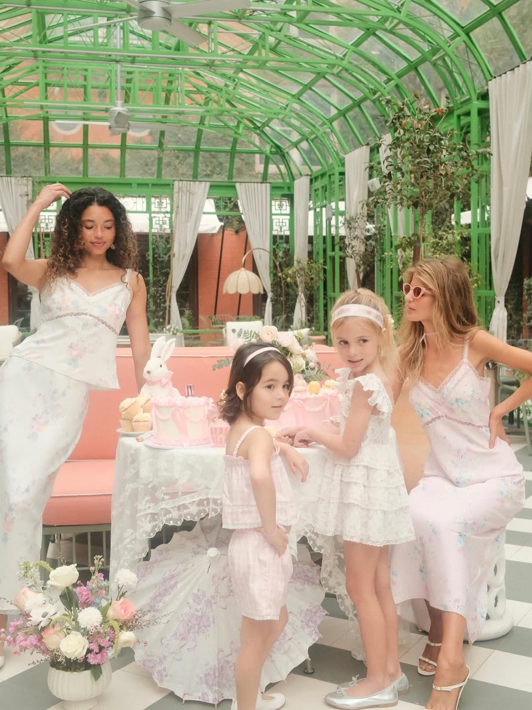 LoveShackFancy: Founded in New York City in 2013 by Rebecca Hessel Cohen, LoveShackFancy is known for its ultra-romantic silhouettes—ruffled dresses, lace-trimmed separates, embellished knits, and bow-laden details that blur nostalgia with modern wearability. The brand’s aesthetic DNA is defined by vintage-inspired femininity, pastel romance, whimsical glamour, and celebratory escapism, channeling a dreamlike lifestyle that moves seamlessly from holiday sparkle to everyday fancy.