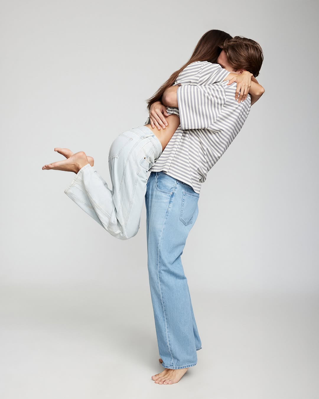 playful intimate couple embrace everyday relaxed