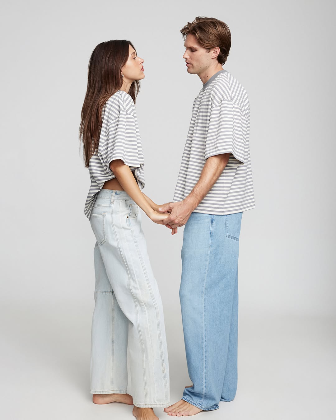 casual streetwear his and hers matching stripes and baggy denim