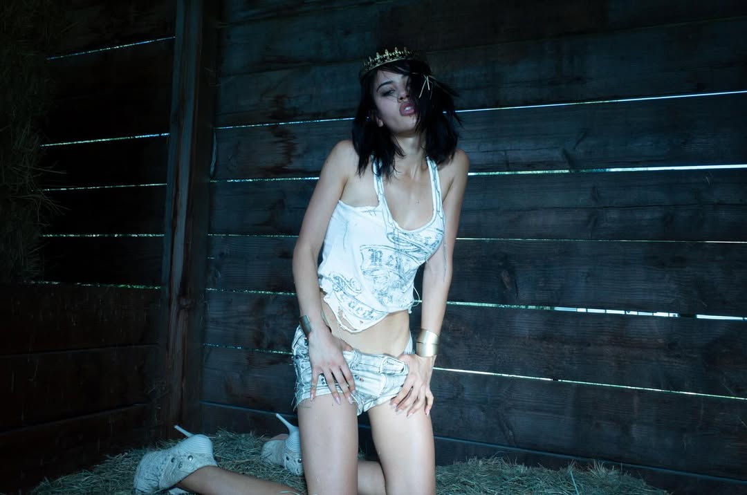 Sequin Slogan Vest in Faded Paisley