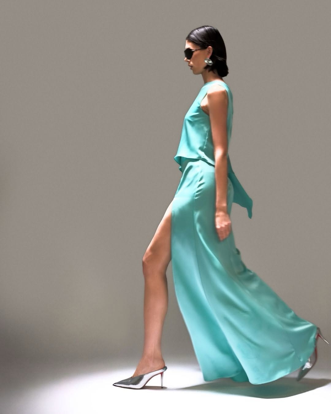 Katie May Collection: Founded in Los Angeles in 2010, Katie May Collection is known for statement eveningwear that balances sensual silhouettes with modern restraint. The brand specializes in fluid gowns, slip dresses, and corseted bodices rendered in satin, crepe, and floral prints, designed for nights that demand presence. Its aesthetic is defined by romantic minimalism, body-conscious drape, elevated femininity, and confident allure.