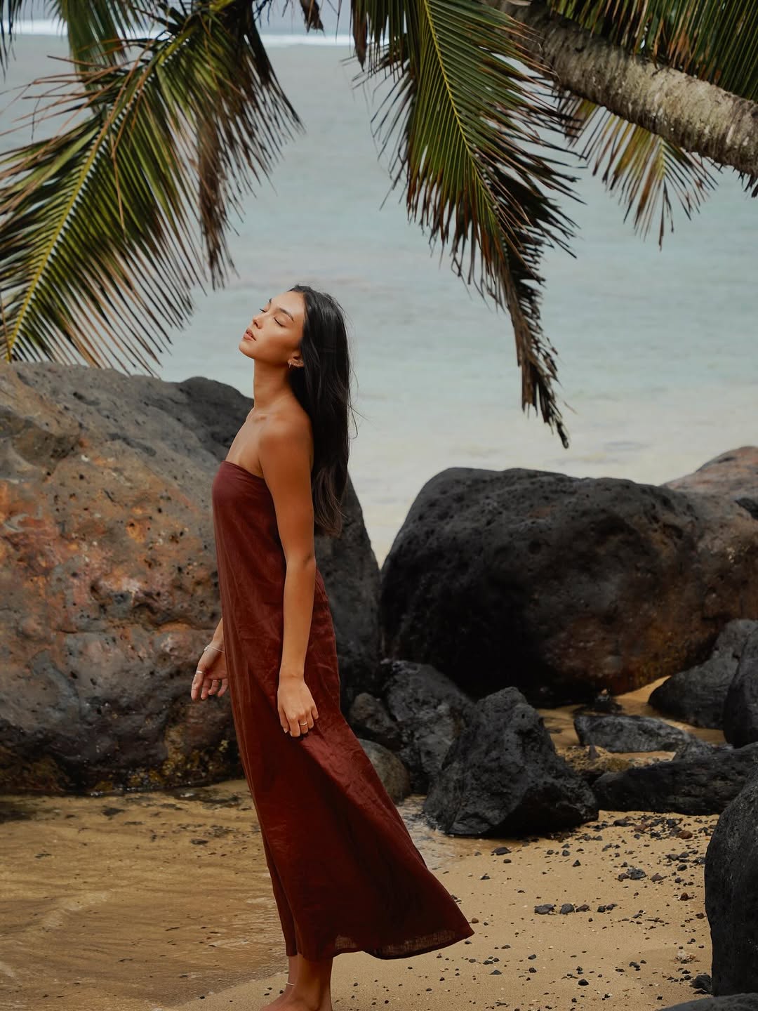 Mikoh, founded by globe-trotting sisters and the undisputed gold standard in luxury swimwear, masters seamless, hardware-free designs with sophisticated cut-outs that transform the beach into your ultimate runway. Now, they're extending that effortless sophistication into breathable linen resort essentials, as seen in The Thani in Anemone. The cropped Marlion Strapless Top ($128), crafted from lightweight 100% linen with an elasticized neckline for a secure yet freeing fit, pairs flawlessly with the flowy Ciel Maxi Skirt ($228) in midweight linen—its pull-on elasticized waist delivering undeniable ease and drape. Layer on the Mentawai Button-Up Long Sleeve Shirt ($168) for textured depth, or opt for the tailored Uma Shorts ($145) when minis call. This natural linen texture and polarized maxi silhouette blur swim into ready-to-wear, ideal for sun-soaked days bleeding into balmy evenings where wanderlust meets polished perfection.